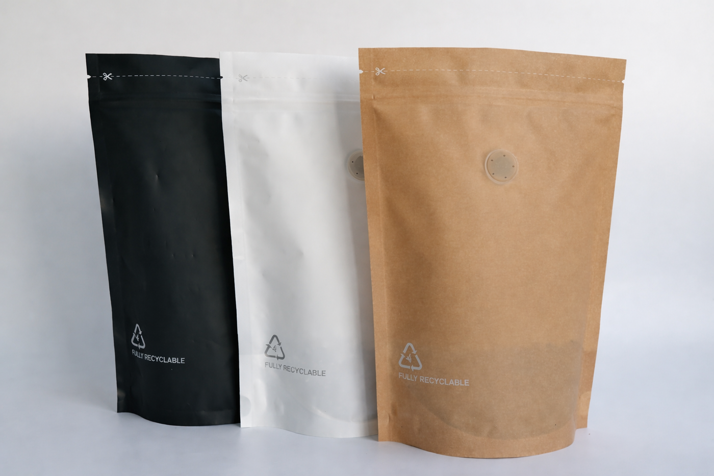 Recyclable packaging continues to gain widespread adoption across multiple industries. We recommend several high-performance recyclable structures, including PE/EVOH-PE and White PE/EVOH-PE, which provide excellent barrier properties and product protection.